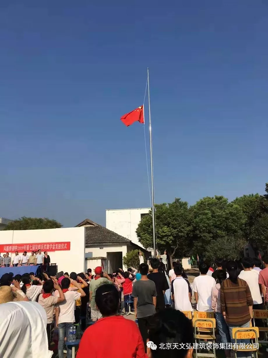 建國(guó)七十周年,舉國(guó)同慶,獎(jiǎng)學(xué)金發(fā)放儀式開(kāi)始前,全校師生進(jìn)行了莊嚴(yán)的升國(guó)旗儀式。為祖國(guó)母親祝福。