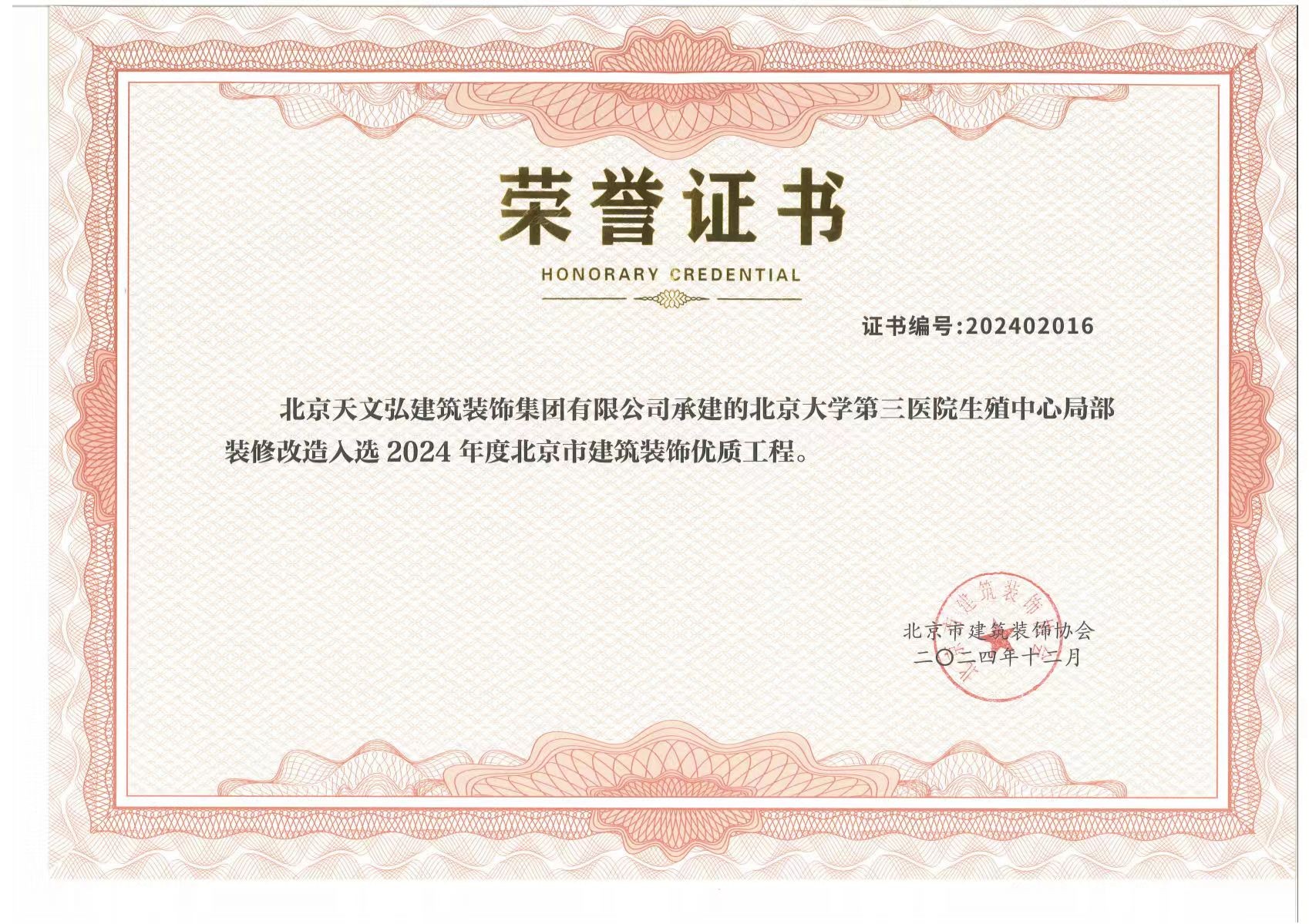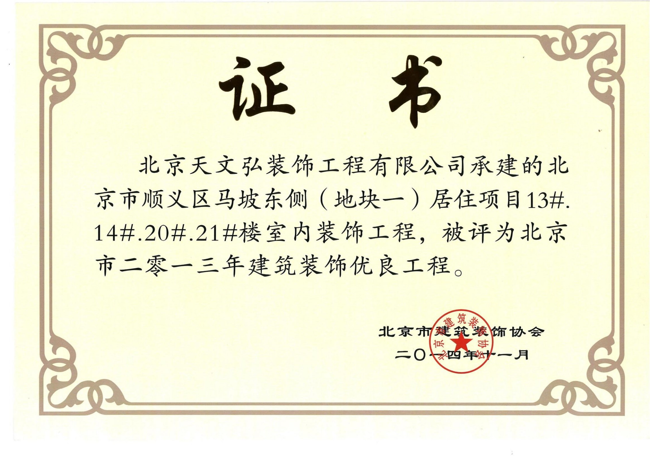 北京市建筑裝飾優(yōu)質(zhì)工程